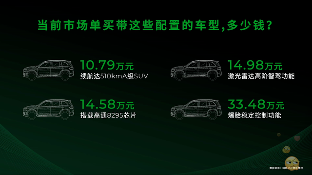 零跑高级副总裁曹力表示,团队在开发阶段对206款紧凑型SUV进行调研,发现没有一款产品能够同时满足品质、智能、价优的“不可能三角”。按照零跑在发布会上展示的数据,当前市场续航能达到510公里的车型最低要10.79万元,搭载激光雷达高阶智驾的车型最低14.98万元。